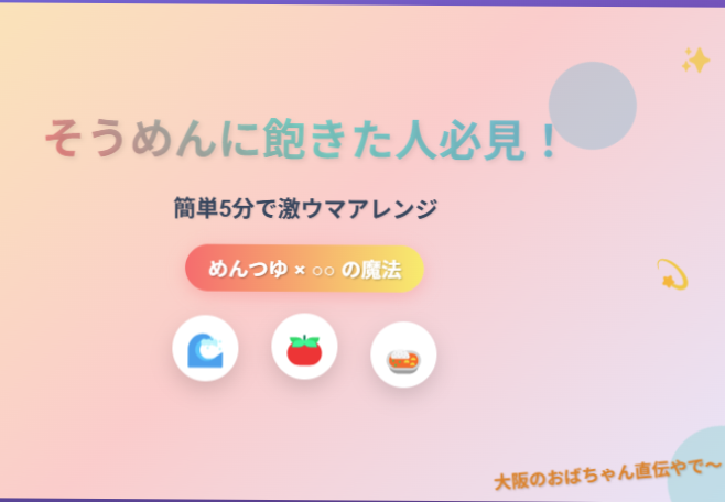 みなさんも、この夏はぜひ試してみてくださいね。きっと「そうめんってこんなに美味しかったんや!」って思うはずですわ。