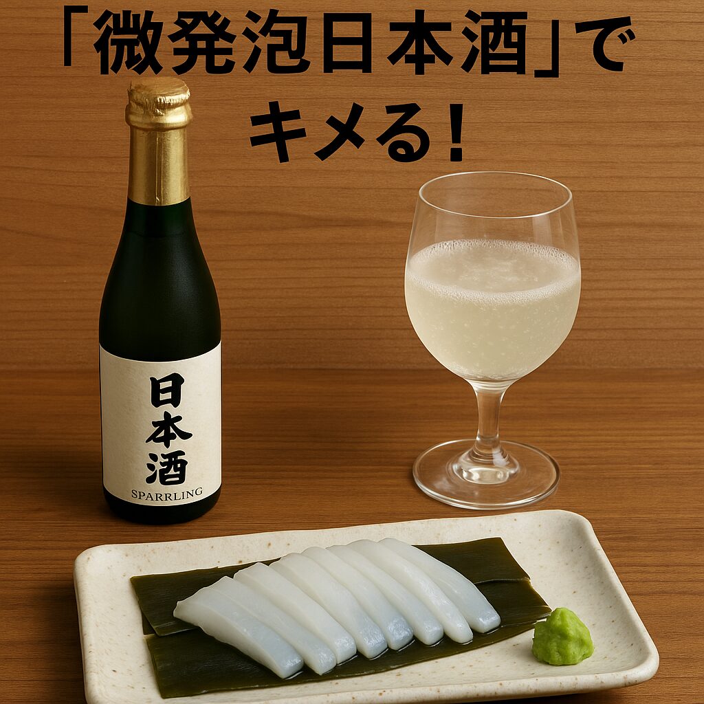 このねっとり濃厚なイカには、普通のキレキレの日本酒やと、ちょっと重いねん。うちが合わせたのは、「微発泡(びはっぽう)の日本酒」!