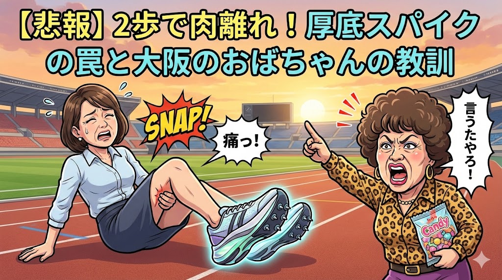 これ、笑い話やけど、これから運動始めようとしてる私ら世代には、ほんまに大事な教訓が詰まってるんよ。麻子さんの体験談をもとに、今流行りの**「厚底カーボンスパイク」の魔力と危険性**について、おばちゃんが愛を込めて解説するで!