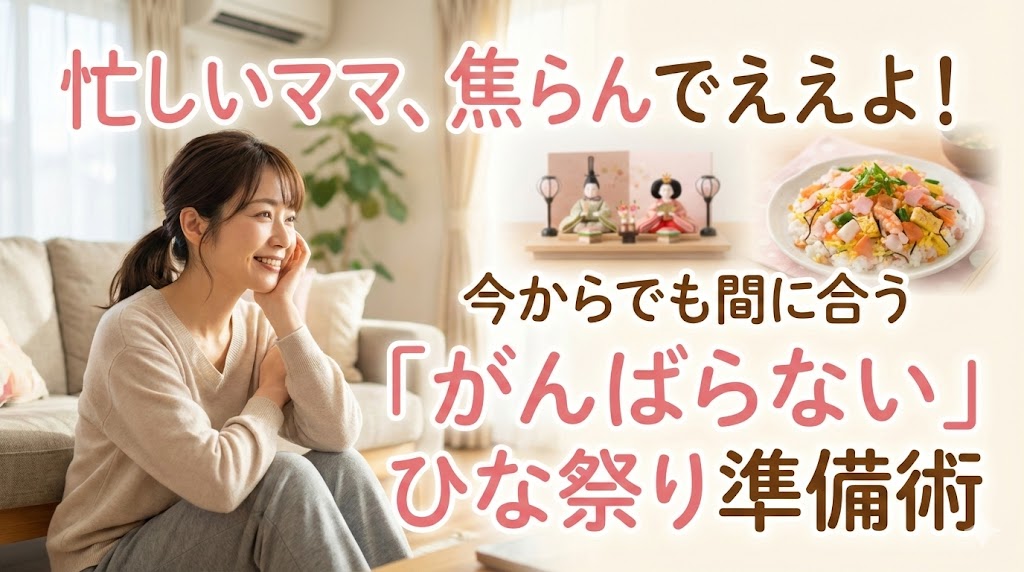 毎度!ブログ編集長の「浪速のオカン」やで。 アンタ、3月直前になって「ひな祭り、どうしよ〜!」って白目むいてるんちゃう?大丈夫、落ち着きなはれ。アンタが焦る気持ち、痛いほどわかるわ。仕事に育児に家事、毎日が戦場やもんな。