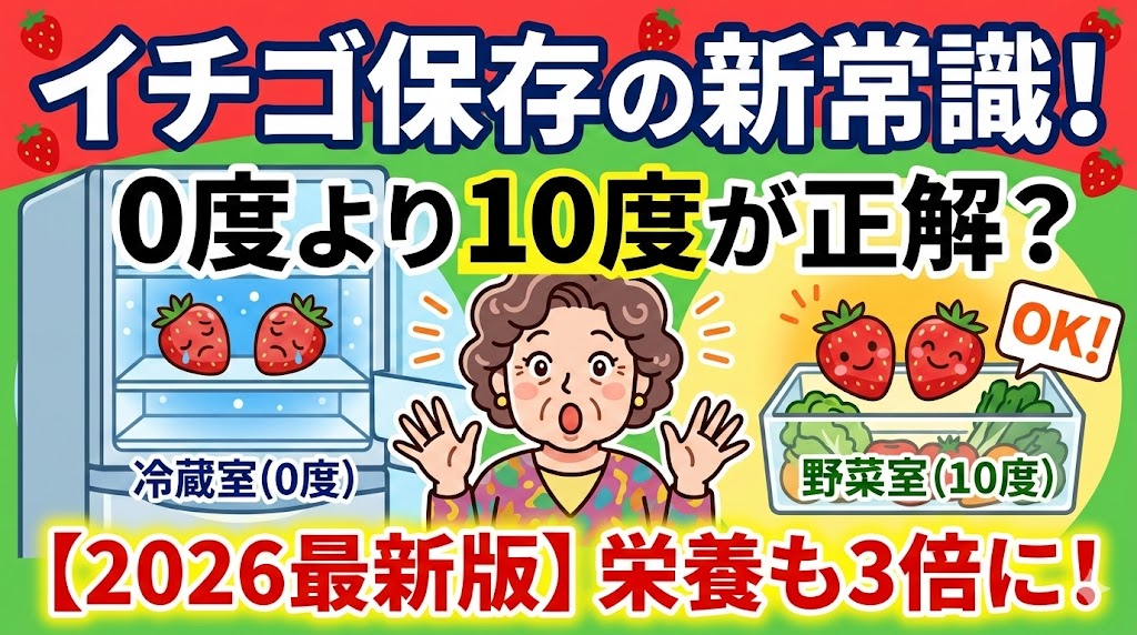 せっかく高いお金出して買うイチゴ、一粒たりとも無駄にせんと、最高に美味しい状態で食べてほしい。今日は2026年最新の「イチゴ選手権」の結果から、プロ直伝の「1.75倍長持ちする保存術」まで、オバちゃんが魂込めて教えたるから、最後までしっかり読みや!