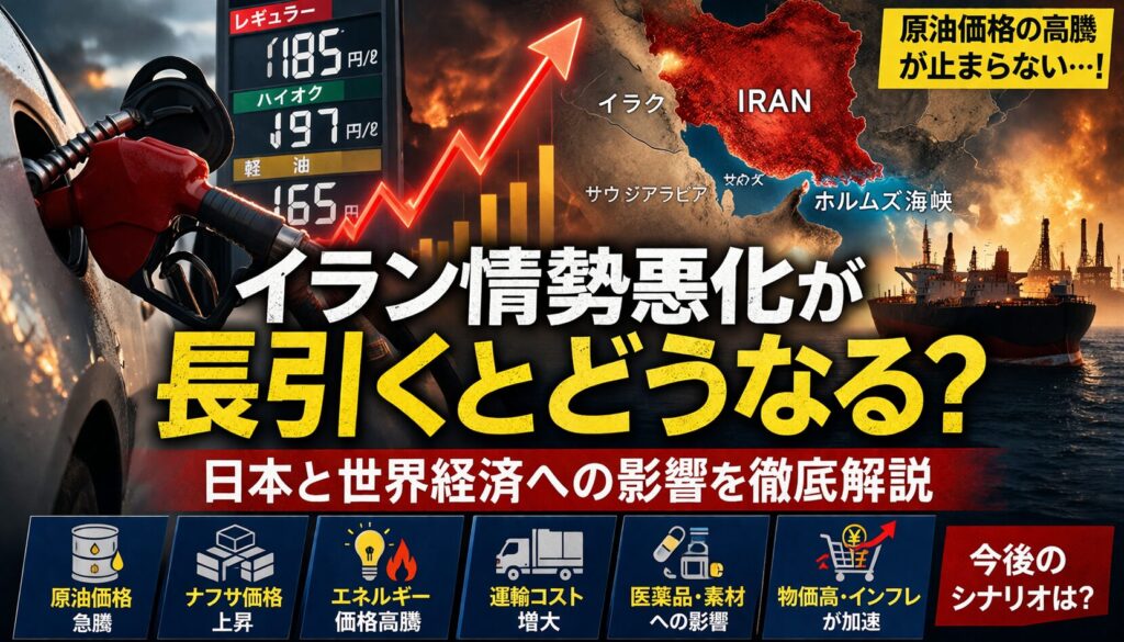 結論から言うわ。イラン情勢が長引くと、あんたの財布からじわじわとお金が逃げていくねん。 ガソリン代だけやない、プラスチック容器、薬、送料、全部や。