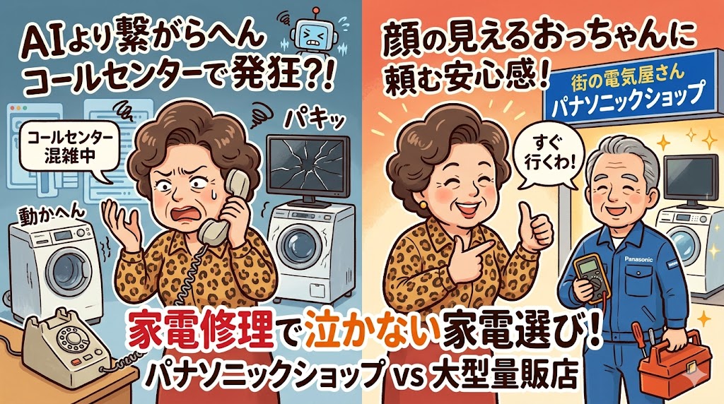 「安さ」なら量販店やけど、「安心」を買うならパナソニックショップ(街の電気屋さん)は最強の選択肢。 特に、今の時代こそ「AIより人間」の温度感が、トラブル時の救世主になるんやで!