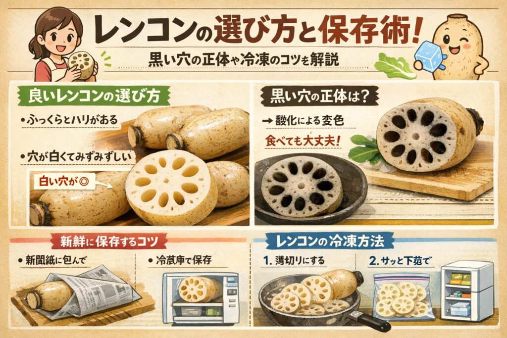 「レンコン買ったけど、すぐ黒うなるねん」「穴の中が茶色いのは食べれるん?」そんなあんたの悩み、全部解決したるから、最後までしっかり読んでいきや!