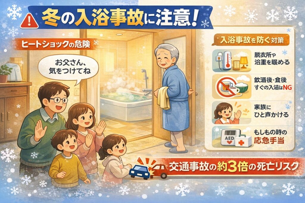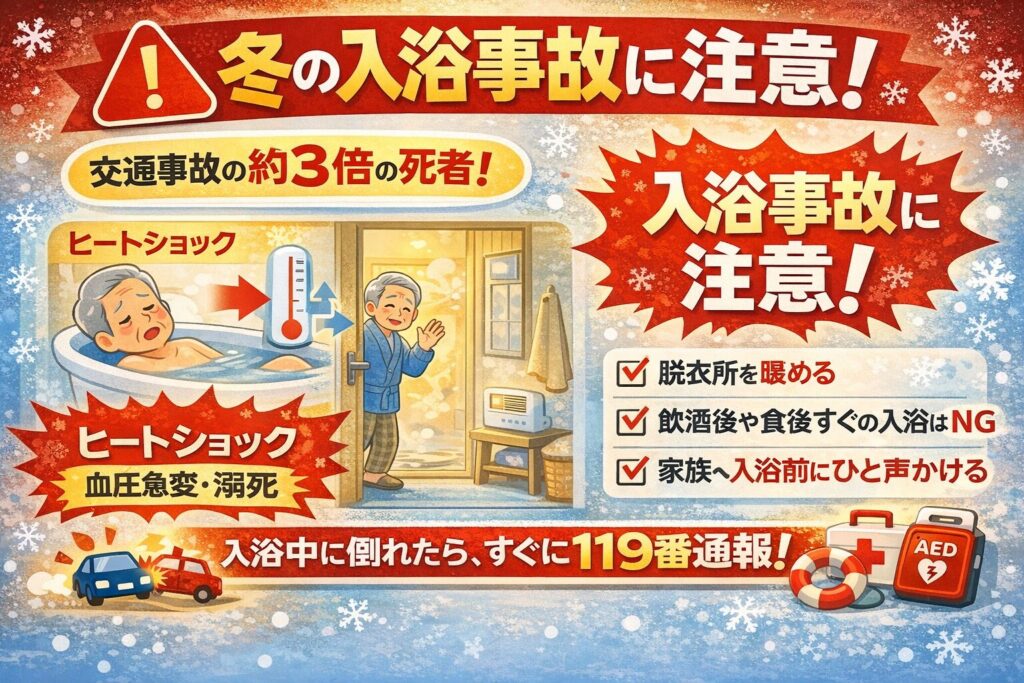今日は、冬場に急増する**「入浴中の事故」**の話。