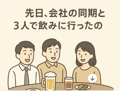 先日、会社の同期と3人で飲みに行ったの。男2人、女1人(私)。全員飲むし食べるけど、当然、男性陣の方がガバガバ飲んで、バクバク食べる。