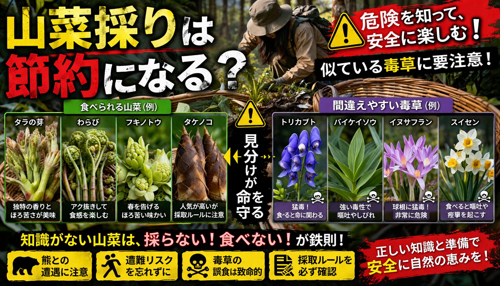 山菜採りは節約になる?甘く見たらアカン!危険・違法・遭難のリアルと安全対策
