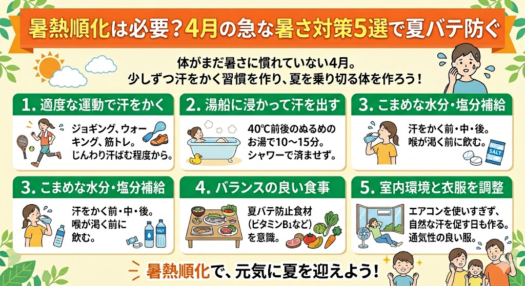 暑熱順化は必要?4月の急な暑さ対策5選で夏バテ防ぐ