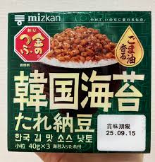 **ミツカンの「金のつぶ 韓国海苔たれ納豆」**って知ってる?これがもう、革命的においしいねん!ごま油の香りと磯の風味が絶妙にマッチして、韓国海苔好きにはたまらん味やで。パッケージも韓国風でおしゃれやし、若い子にも受けそうやわ。