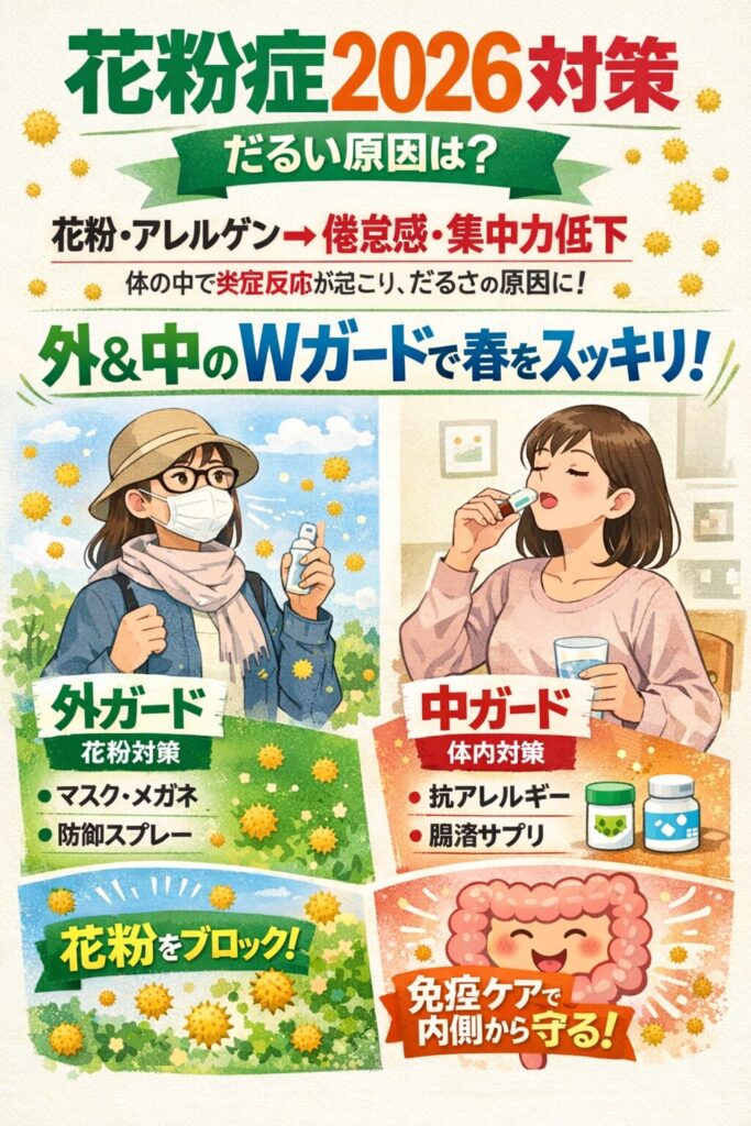 花粉症2026対策|だるい原因は?外&中のWガードで春をスッキリ