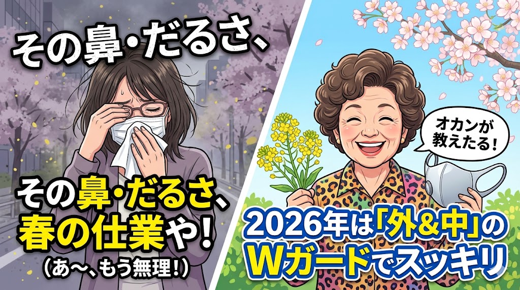 アンタ、今の時期えらいことになってへん? 目はショボショボ、鼻はムズムズ。おまけに身体はだる重〜…。2026年の春も、花粉が元気すぎて困ったもんやわ。