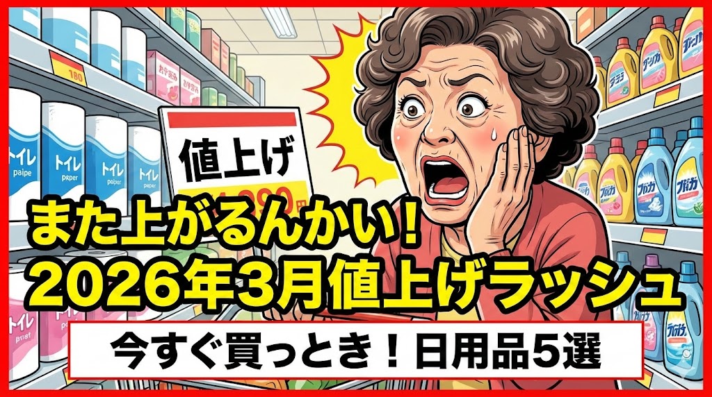今日は、2026年3月から値上げされる日用品の正体と、**「これだけは今すぐ買っとき!」**というプロ厳選の5アイテムを教えるな。これを読めば、あんたの家計も、あんたの心も、ちょっとは軽くなるはずやで!
