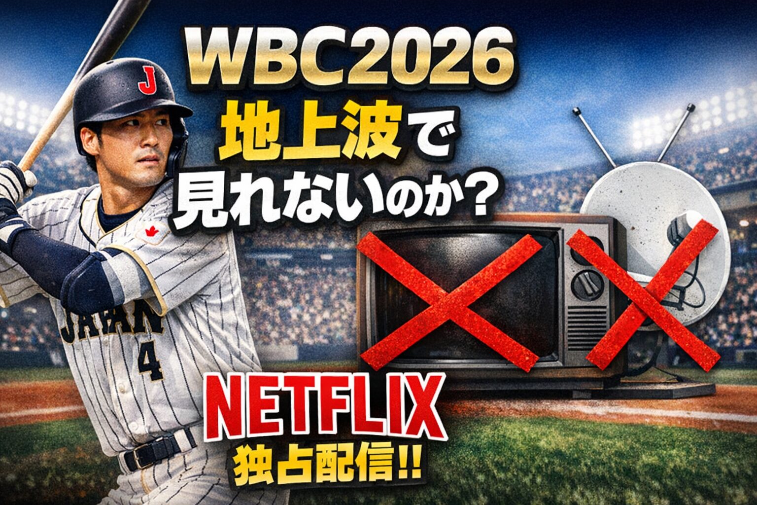 • 2026年WBCはNetflix独占配信!地上波・アマプラはなし。