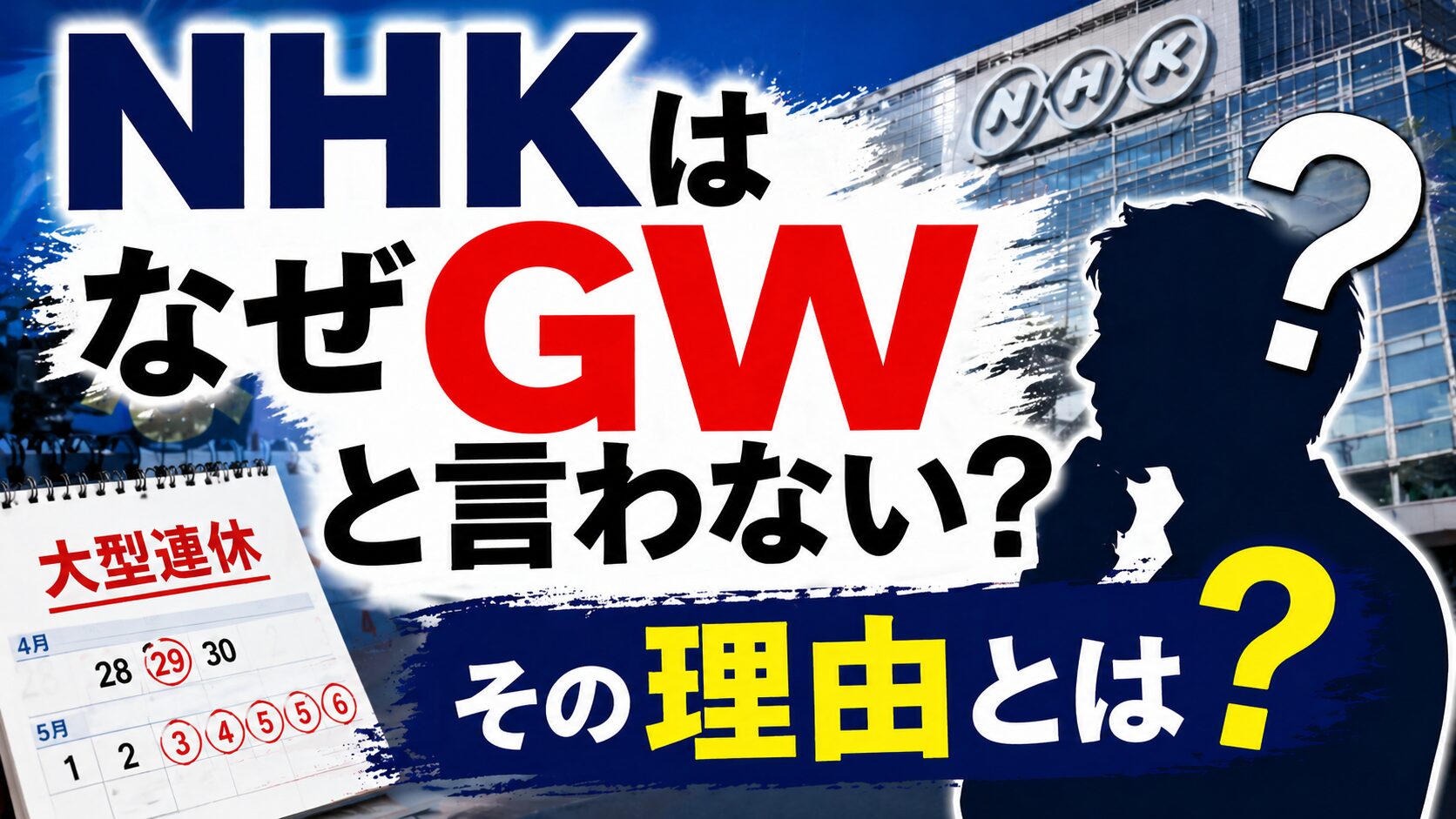 あんた、ええとこに目をつけたなあ!連休中にテレビ見てて「なんでNHKだけ頑なに『大型連休』って言うん?ゴールデンウィーク(GW)でええやん、堅苦しいわ!」って、お茶の間でツッコミ入れたくなったんやろ?