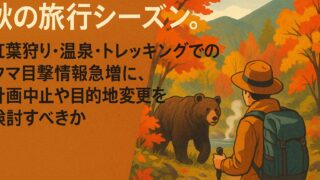 未分類 【2025年最新版】クマ遭遇対策!秋旅の賢い選び方と「命を守る5選」 🍁なめとったらアカンで!🐻秋旅でクマ遭遇!?おばちゃんが教える「命を守る」旅の賢い選び方&対策5選!紅葉・温泉は延期すべき?【2025年最新】🐻秋の旅行に広がる「クマ出没」の不安、ホンマにヤバいんちゃう?ちょっと奥さん、聞いてや!紅葉が燃... 2025.11.04 未分類