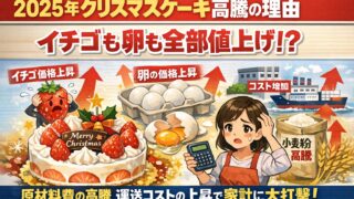 未分類 2025年クリスマスケーキ高騰の理由|イチゴも卵も全部値上げ? 「ちょっとあんた!今年のクリスマスケーキの値段見た?目ん玉飛び出るかと思ったわ!」そんな声が聞こえてきそうやね。こんにちは、当ブログのディレクター兼、あんたらの頼れる大阪のオカンやで。「なんでこんなに高いん?」「ぼったくりちゃうん?」って思... 2025.12.24 未分類