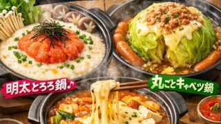 未分類 脱マンネリ鍋!話題の絶品レシピ3選|明太とろろ・丸ごとキャベツ あなたは、毎日の献立に頭を抱える「鍋ユーザー」ですね?わかります。冬は週3で鍋、いや週4で鍋。「あー、今日も鍋でええか…」という諦め半分の溜息、ここまで聞こえてますよ!この記事では、そんな**「鍋マンネリ」を打破し、家族に「今日の鍋、なんか... 2026.01.20 未分類