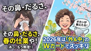 未分類 花粉症2026対策|だるい原因は?外&中のWガードで春をスッキリ まいど!トレンドブログ編集長の「大阪のオカン」やで!アンタ、今の時期えらいことになってへん? 目はショボショボ、鼻はムズムズ。おまけに身体はだる重〜…。2026年の春も、花粉が元気すぎて困ったもんやわ。今日は、読んだ人が「あ〜、これこれ!」... 2026.03.16 未分類