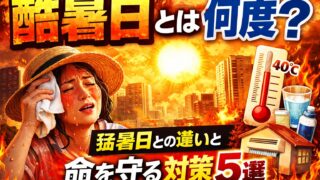 未分類 酷暑日とは?40℃の危険性と猛暑日との違い3つ 【結論】40℃はもう別格やで!新設「酷暑日」は命を守るサインや「猛暑日ちゃうん?まだ上あんの?」って思った人、正解。結論から言うと——👉 40℃以上は「酷暑日(こくしょび)」として別枠になったで!これは気象庁が正式に発表したもんで、ただの名... 2026.04.18 未分類